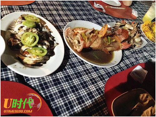 第一个周末,我和七个学校的同学去了薄荷岛,坐船花了2个小时。